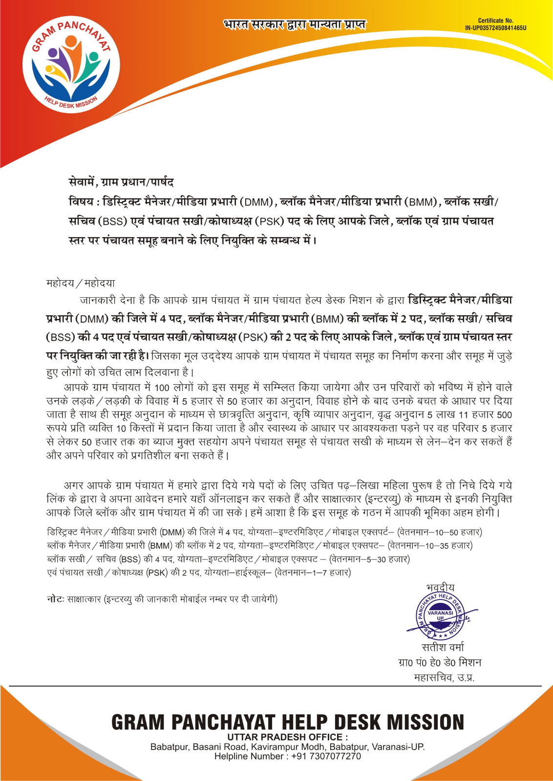 ग्राम पंचायत हेल्प डेस्क मिशन (ट्रस्ट) का मूल उद्देश्य ग्रामीण एवं शहरी क्षेत्रों में गरीब परिवार से बिलांग करने वाले परिवारों को आर्थिक सहयोग प्रदान करना व उनके सुख-दुःख में साथ देना है।